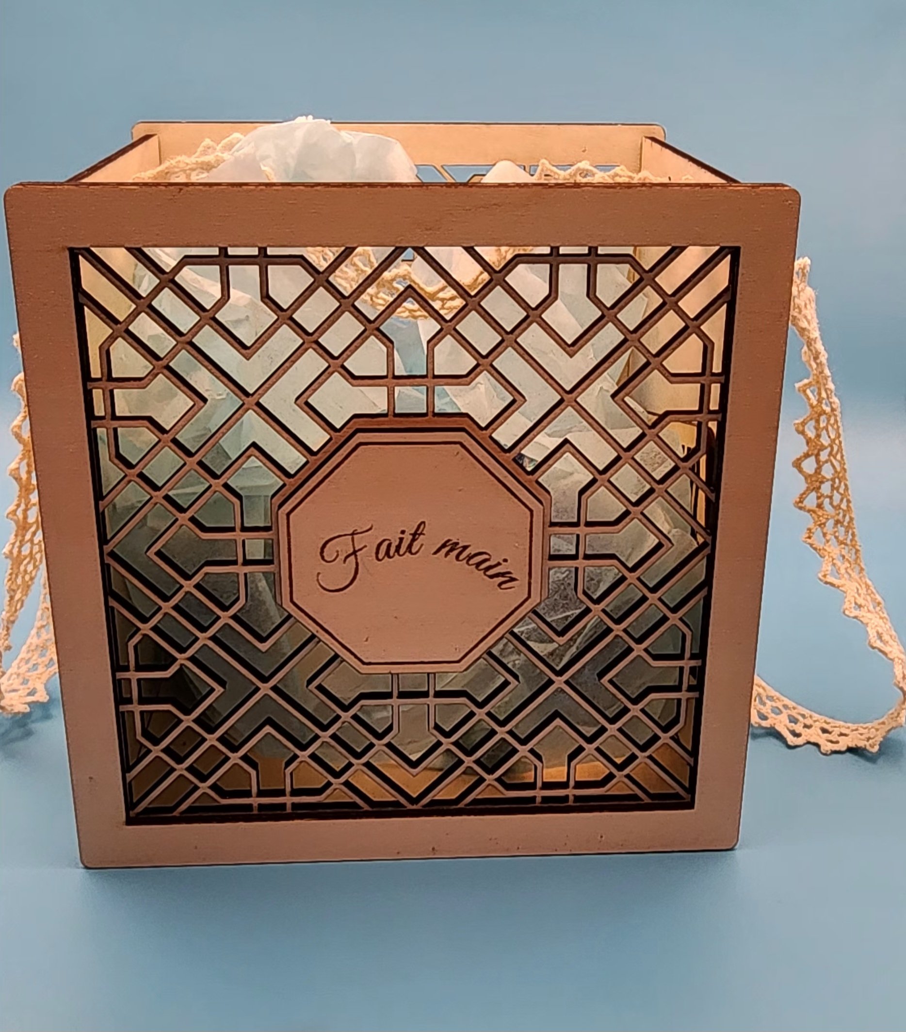 Chaque boîte ajourée en bois est entièrement conçue, assemblée et vérifiée à la main dans mon atelier. Je prends soin de chaque détail pour te proposer un écrin à la fois élégant, unique et plein de charme.