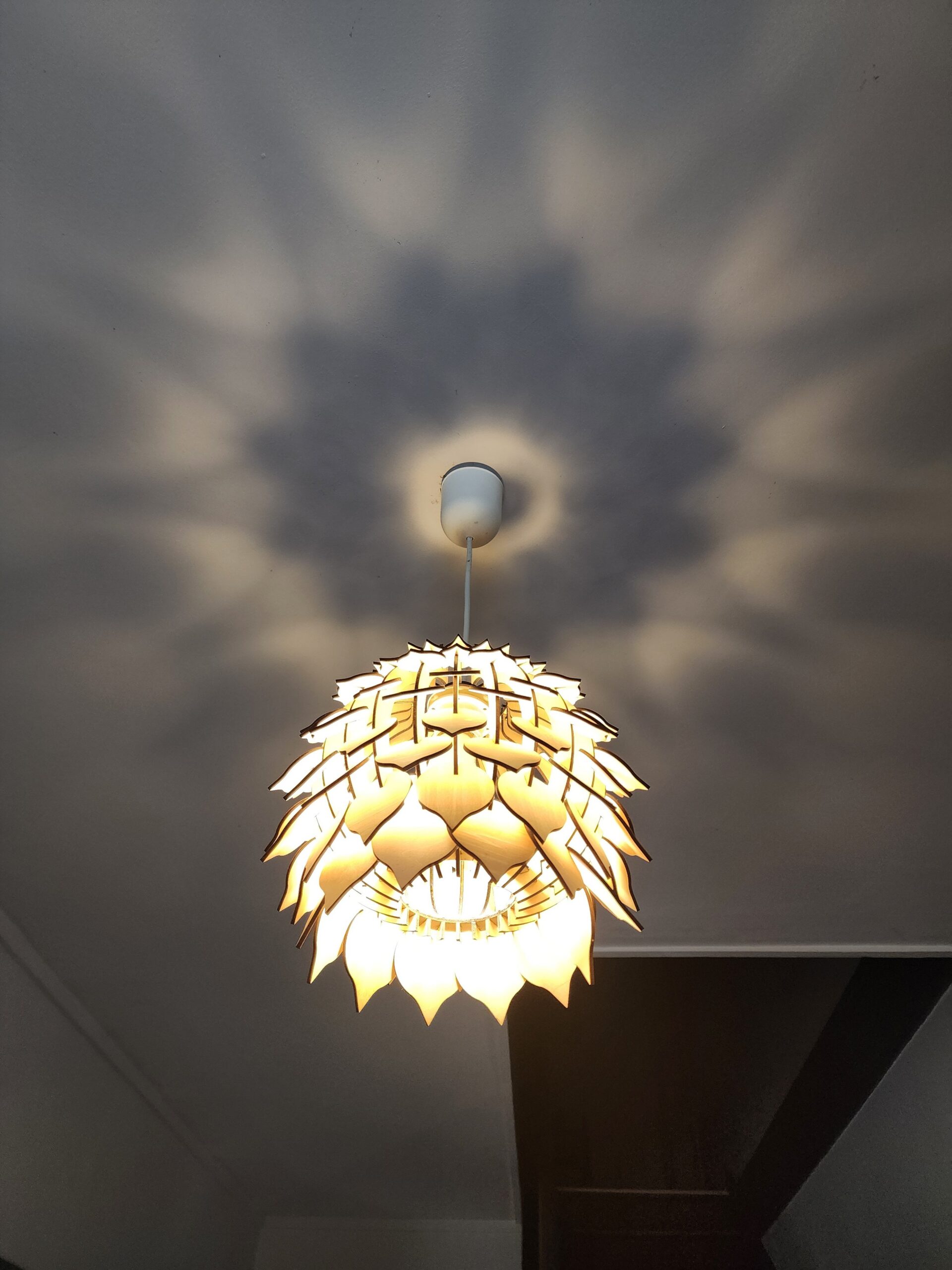 Plus qu’une simple lampe, cette création est une sculpture lumineuse. Conçue par découpe précise, elle projette sur vos murs une rosace organique qui transforme l’atmosphère de votre pièce dès la nuit tombée.