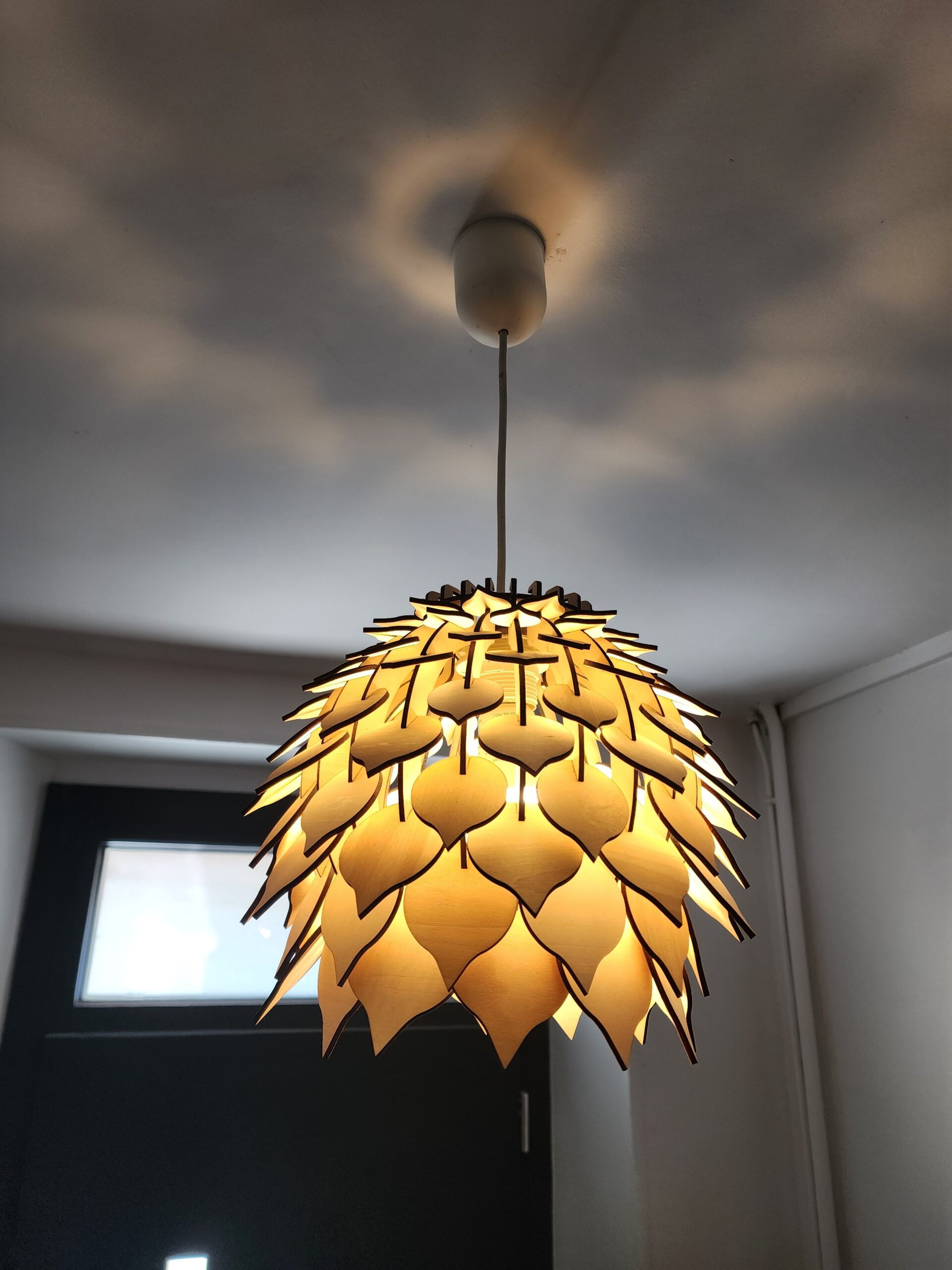 Lustre en Bois « Pomme de Pin » – Ambiance Chaleureuse & Jeux d’Ombres