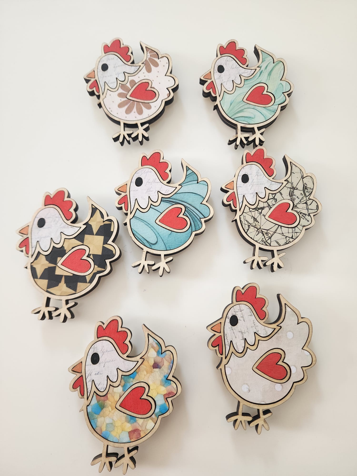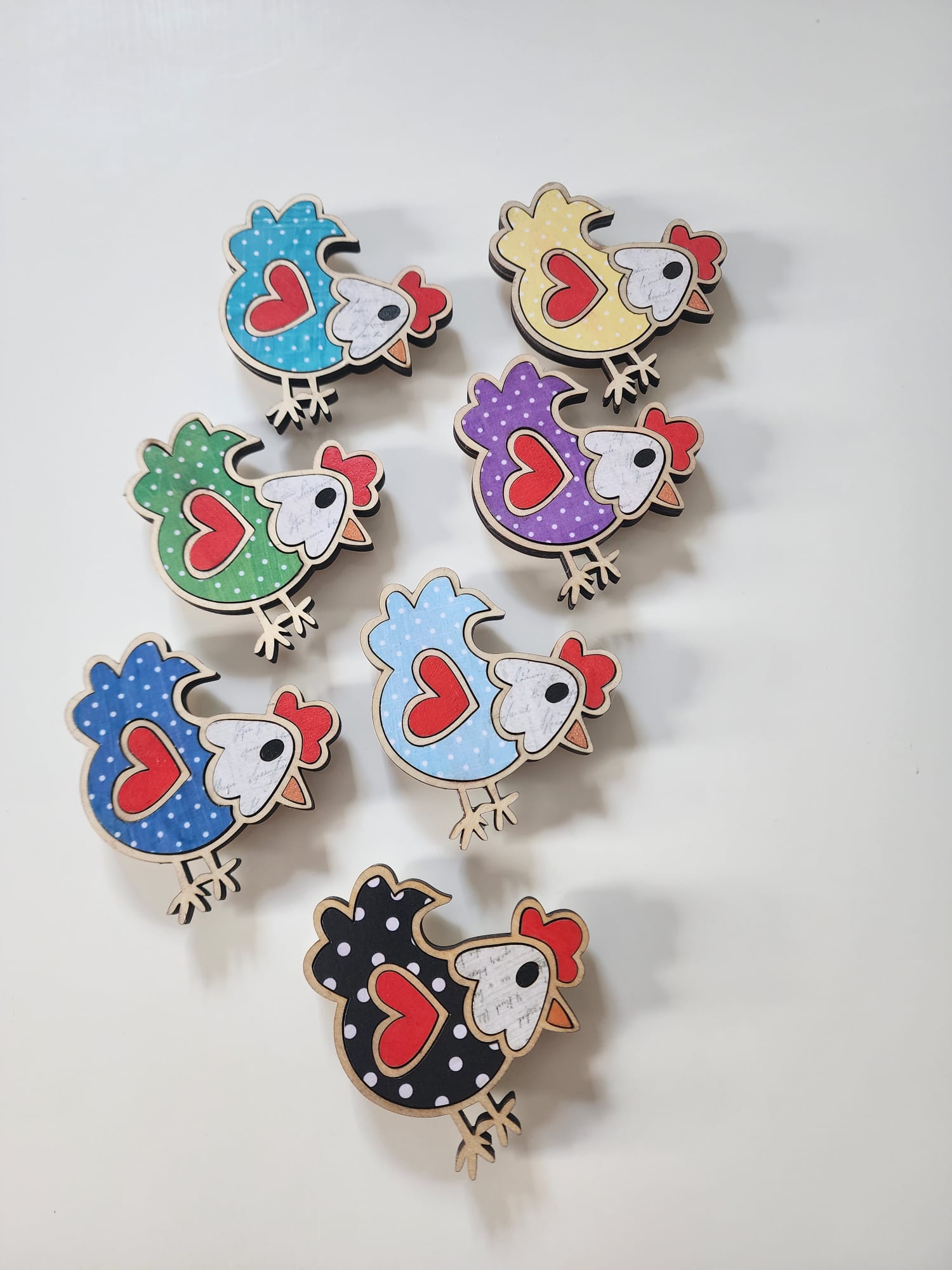 Donnes vie à ta cuisine avec notre collection de magnets artisanaux en bois inspirés de la basse cour. Choisis parmi nos trois modèles ou crées ta propre famille: