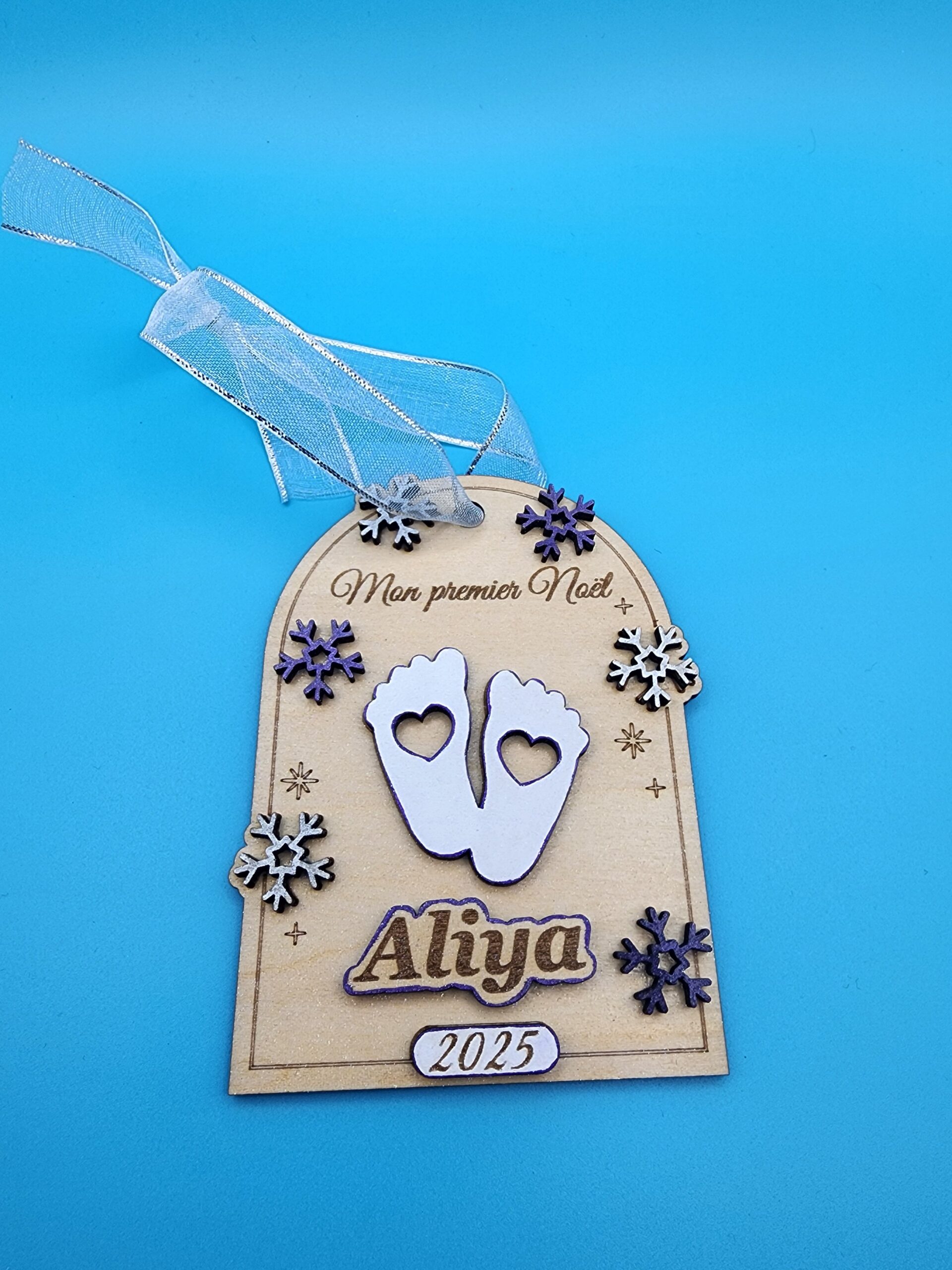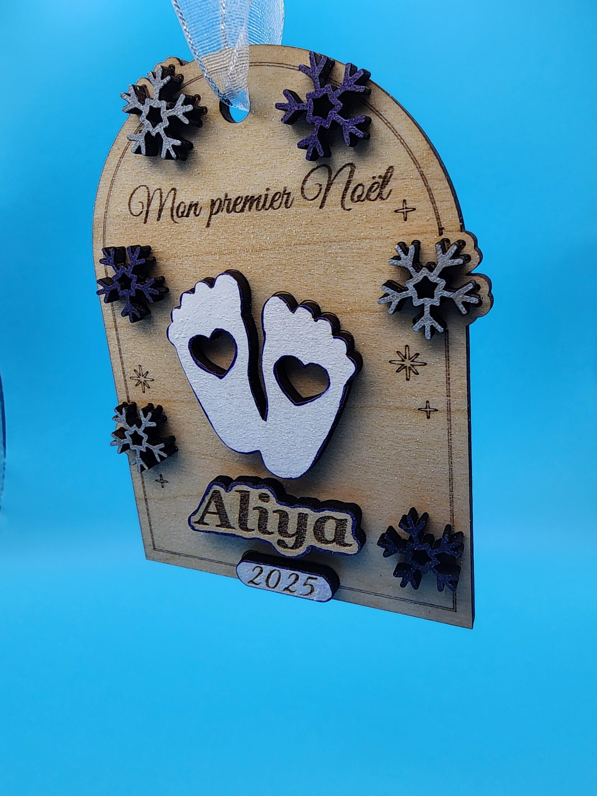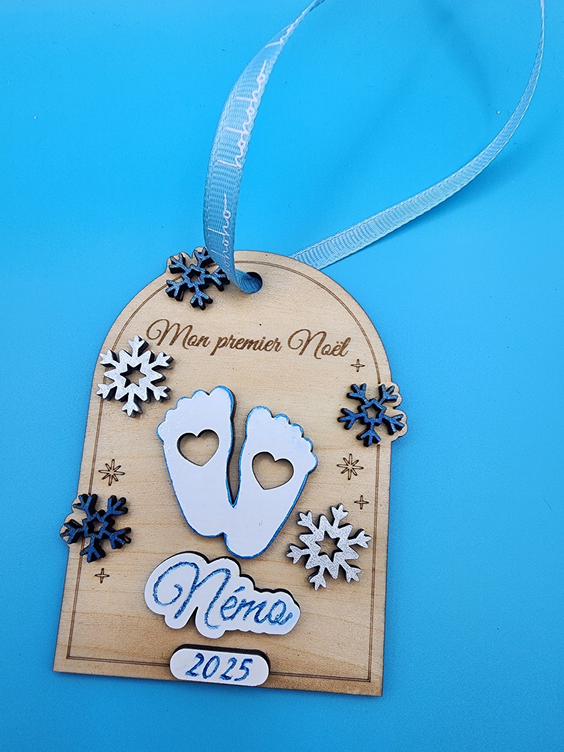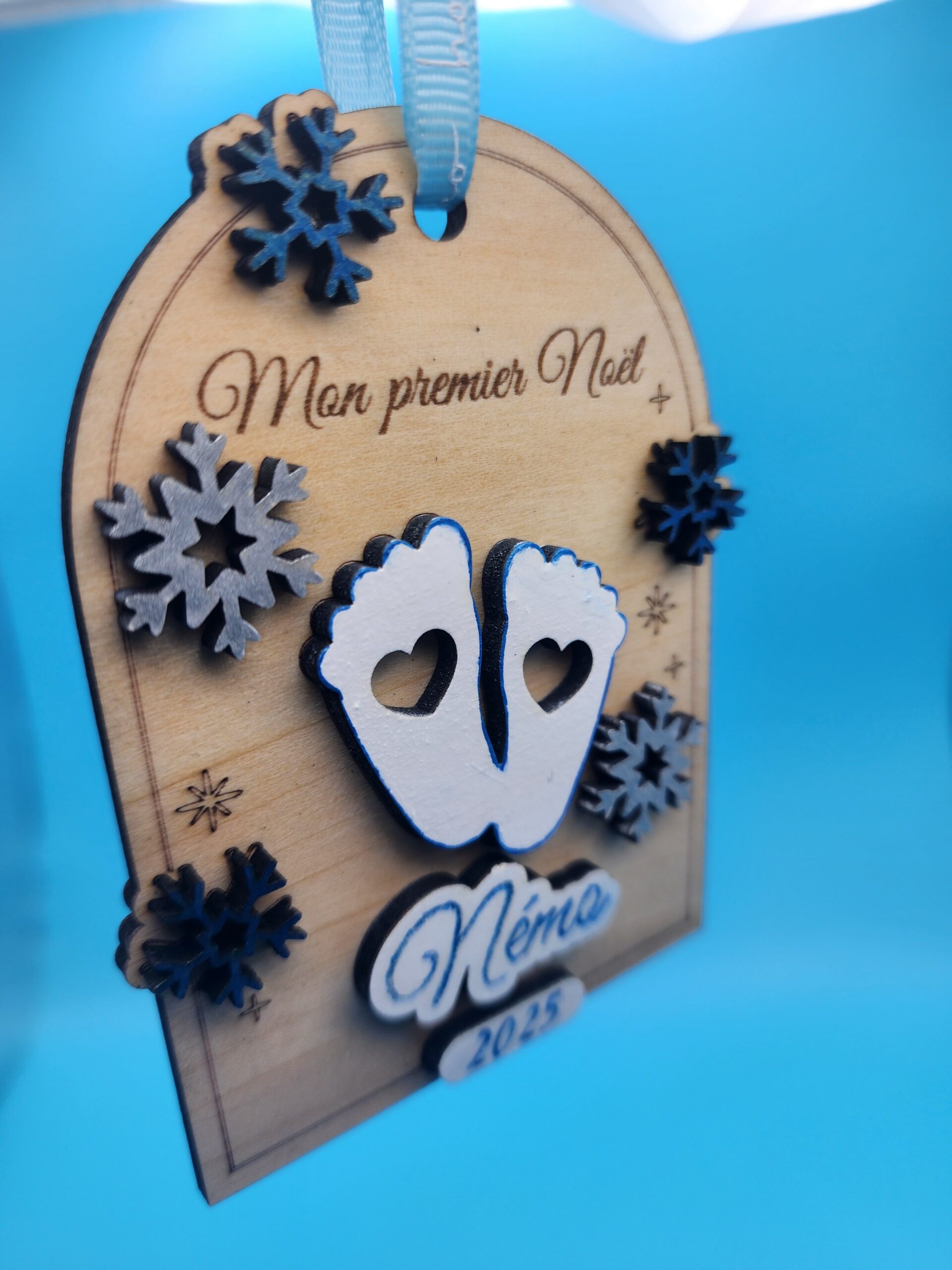 CĂ©lĂ©bres la magie du premier NoĂ«l de bĂ©bĂ© avec cette jolie dĂ©coration personnalisĂ©e, dĂ©coupĂ©e et gravĂ©e au laser dans un bois fin et chaleureux. Chaque piĂšce est peinte et assemblĂ©e Ă la main dans mon atelier, pour offrir un souvenir unique, dĂ©licat et plein dâĂ©motion.